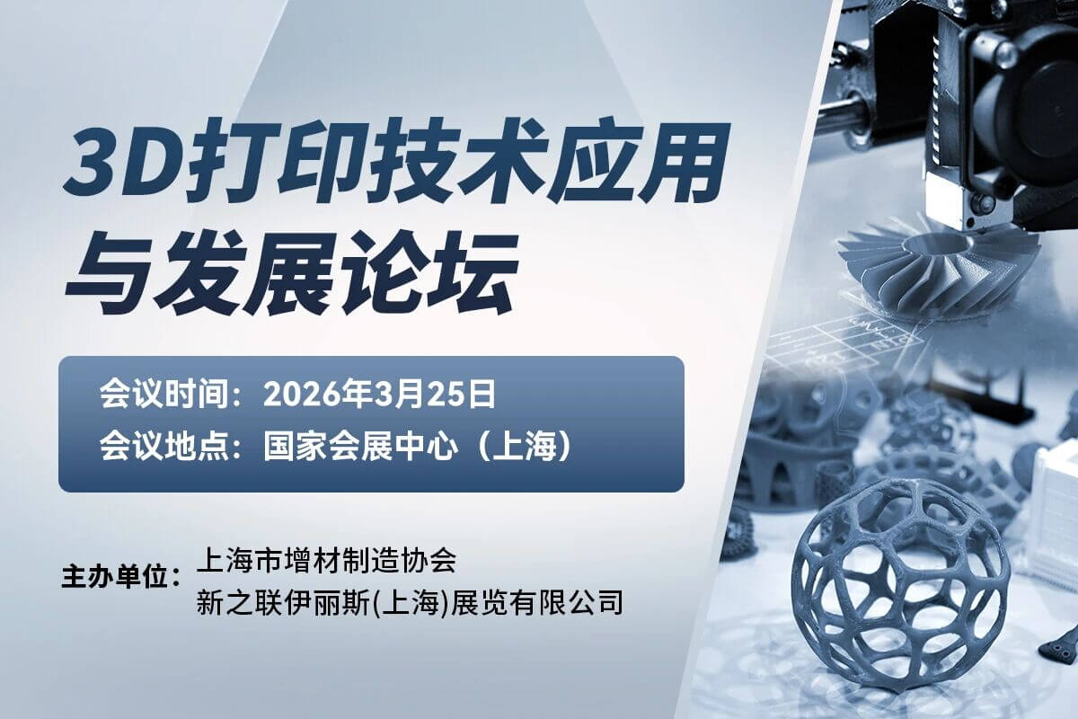 在全球制造业智能化、数字化浪潮的推动下,增材制造(3D打印)技术正以前所未有的速度重塑着设计与生产的边界。随着航空航天、医疗器械、汽车制造、建筑工业等领域对个性化、轻量化与快速迭代需求的日益增长,3D打印技术正从“样品制造”迈向“批量生产”的关键阶段。在此背景下,由上海市增材制造协会与新之联伊丽斯(上海)展览有限公司联合倾力打造3D打印技术应用与发展论坛将于2026年3月25日在国家会展中心(上海)盛大启幕。