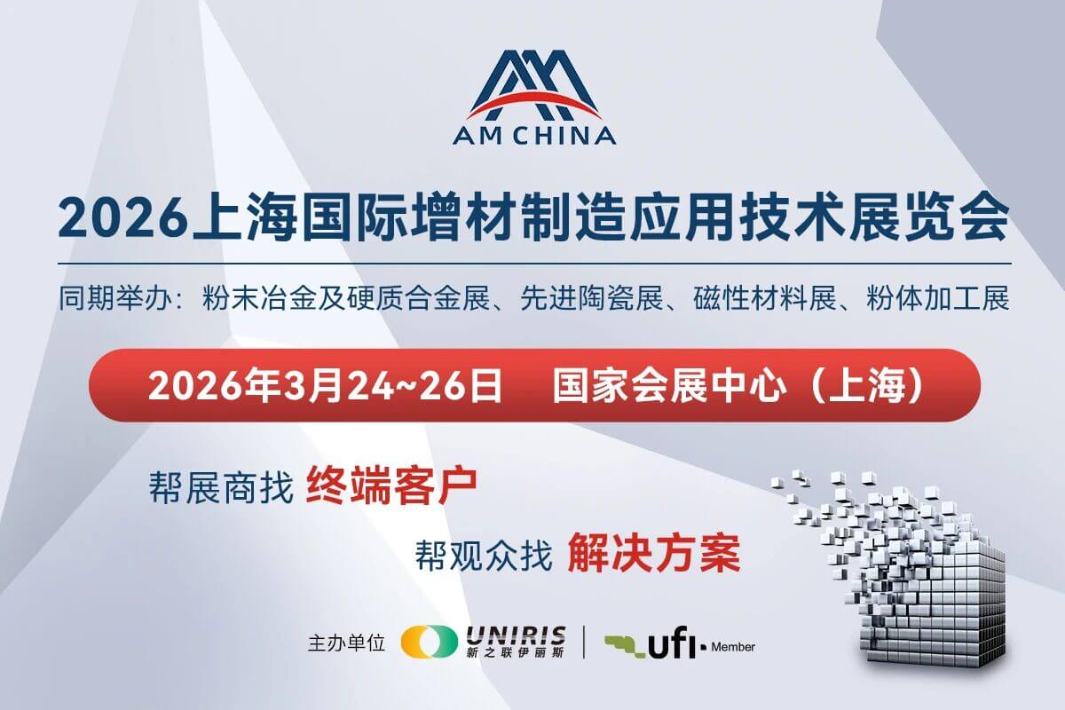 在新质生产力加速重构全球制造业格局的背景下,增材制造技术正以颠覆性创新推动产业跃迁。2026上海国际增材制造应用技术展览会(AM CHINA 2026),将于2026年3月24-26日在国家会展中心(上海)盛大启幕!