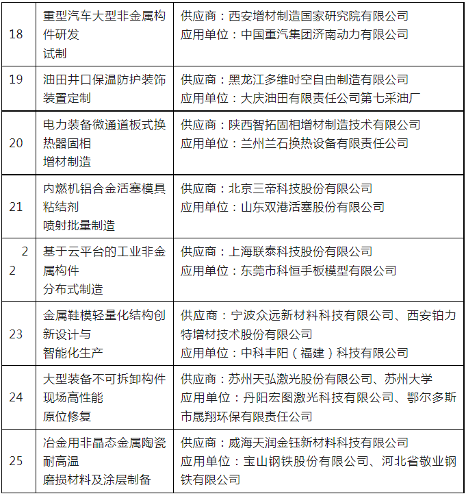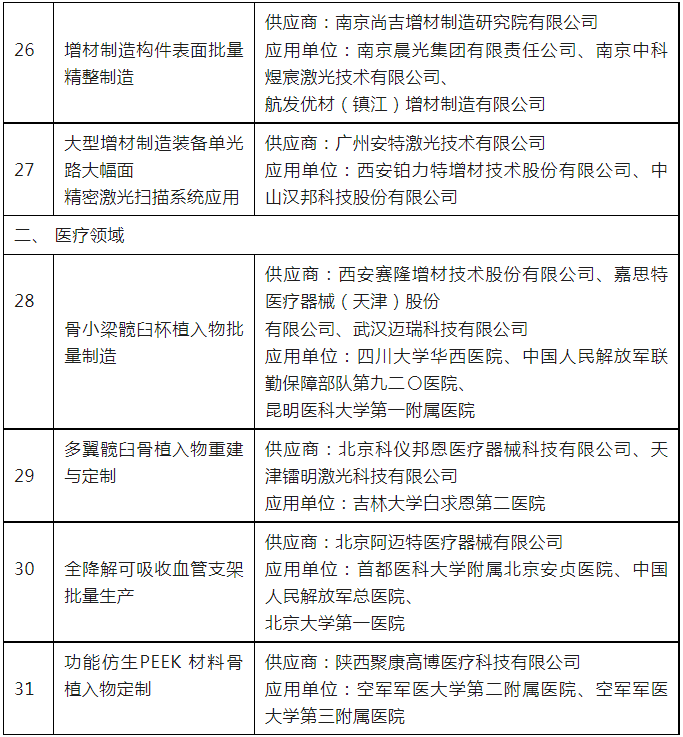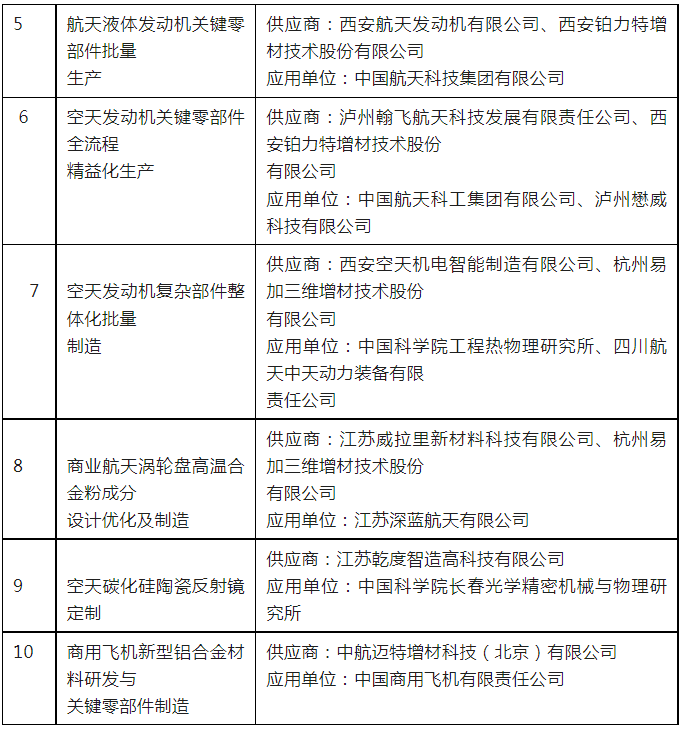 2023 年度增材制造典型应用场景公示名单 :